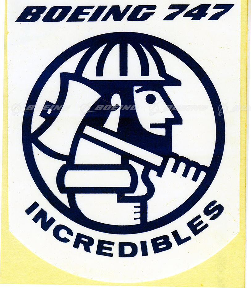 A Paul Bunyan decal adorned the helmets of the first 747 workers circa 1968