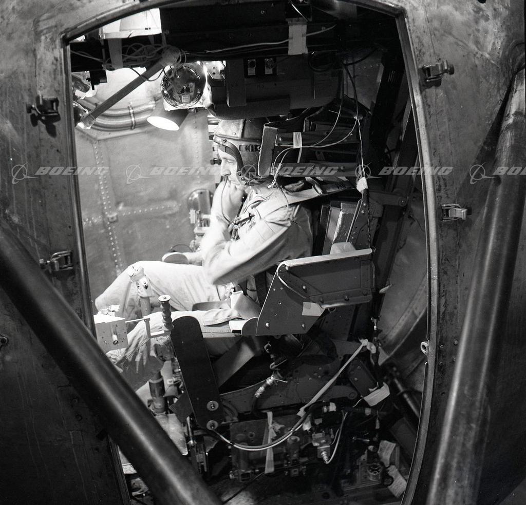 North American Aviation test pilot Scott Crossfield testing a new space suit in the centrifuge at the Naval Air Development Center in Johnsville, Pennyslyvannia, December 17, 1957. Testing was done in preparation for testing the X-15 research airplane.