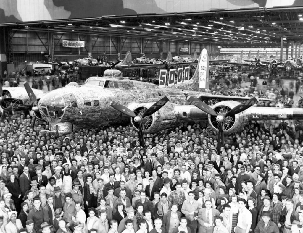 The 5,000th B-17 built after Pearl Harbor carried the signatures of all the people who built her in the Boeing Seattle Plant 2.