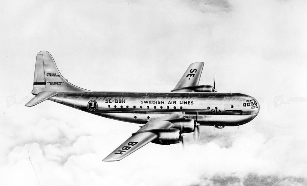 Model 377 Stratocruiser Illustration in Swedish Intercontinental Airlines (SILA) Livery