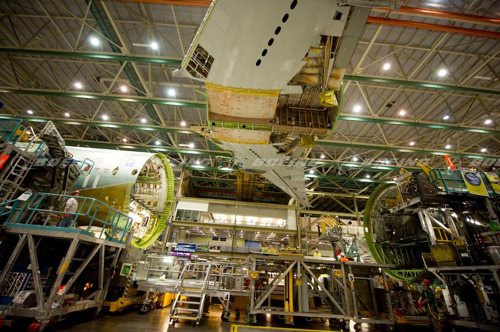 777 Wing Body Join on Boeing's Moving Line in Everett