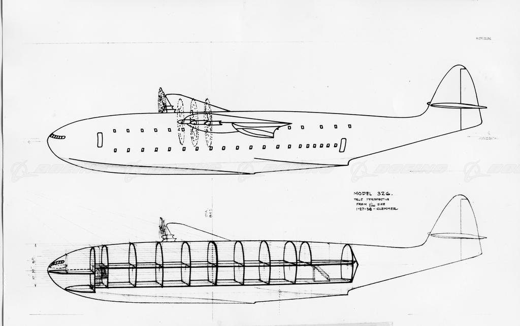 The Boeing Model 326 pressurized double-deck flying boat was designed in response to a 1937 Pan American Airways proposal for a flying ocean liner capable of a non-stop crossing over the Atlantic Ocean. This idea never reached production.