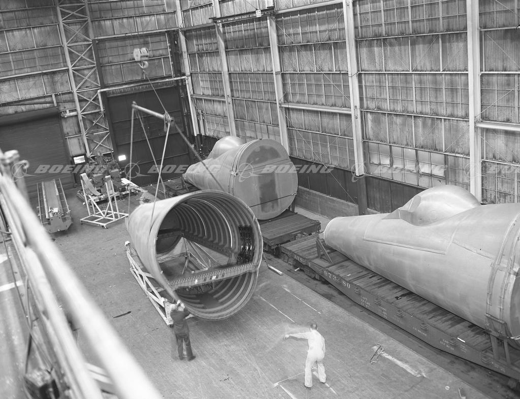Ryan Aeronautical built Fuselage Section 45 for the KC-97 Tanker in San Diego, CA and delivered them by rail to Boeing in Seattle, WA. (April 17, 1953)