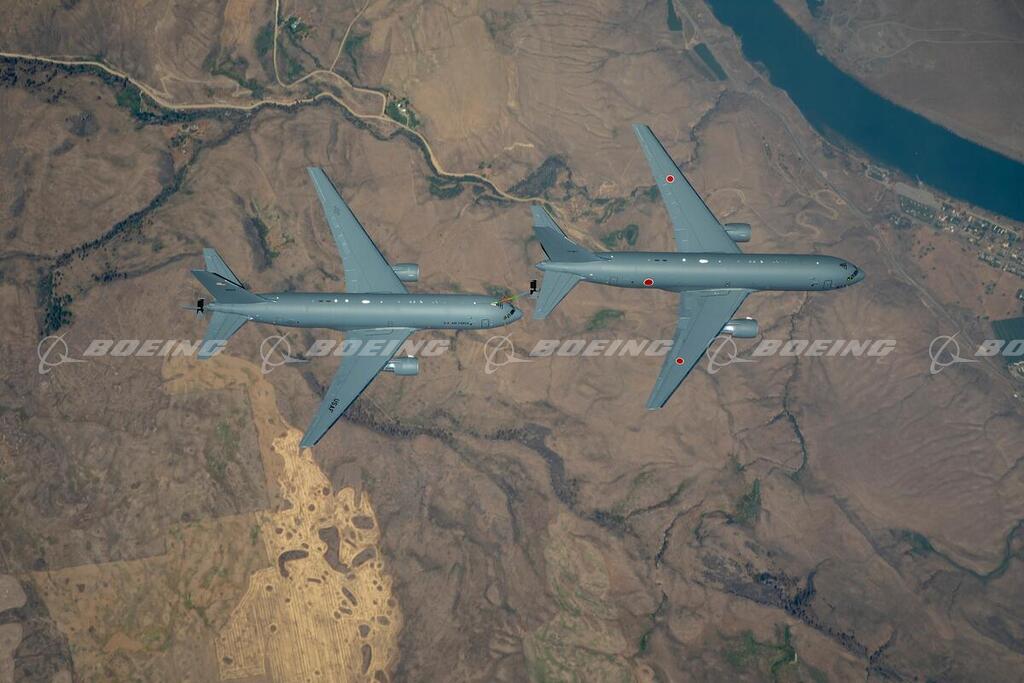 First KC-46A for a non-US customer (Japan) gives and receives fuel with another KC-46A