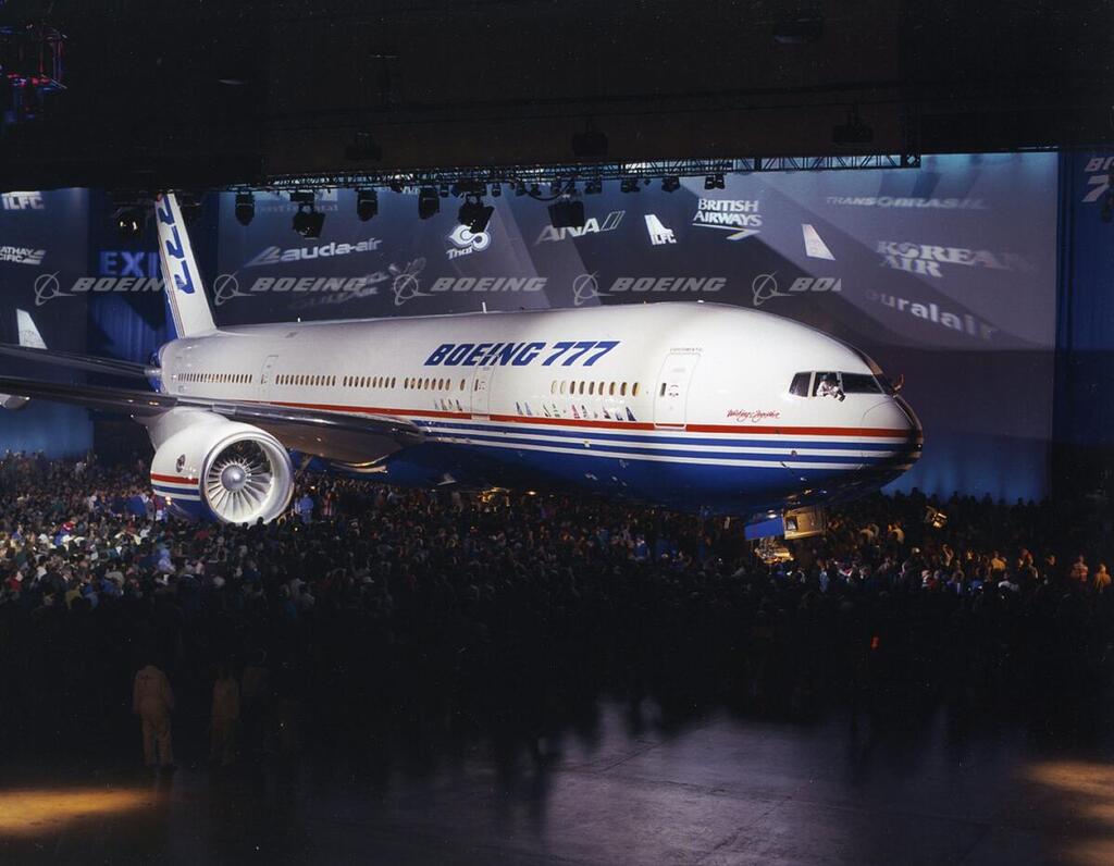 The First 777 Rolls Out of Boeing's Everett, WA Paint Hangar