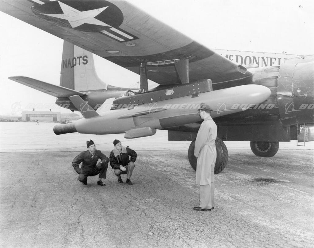 A-26 with McDonnell Puffin anti-ship missile on flight ramp