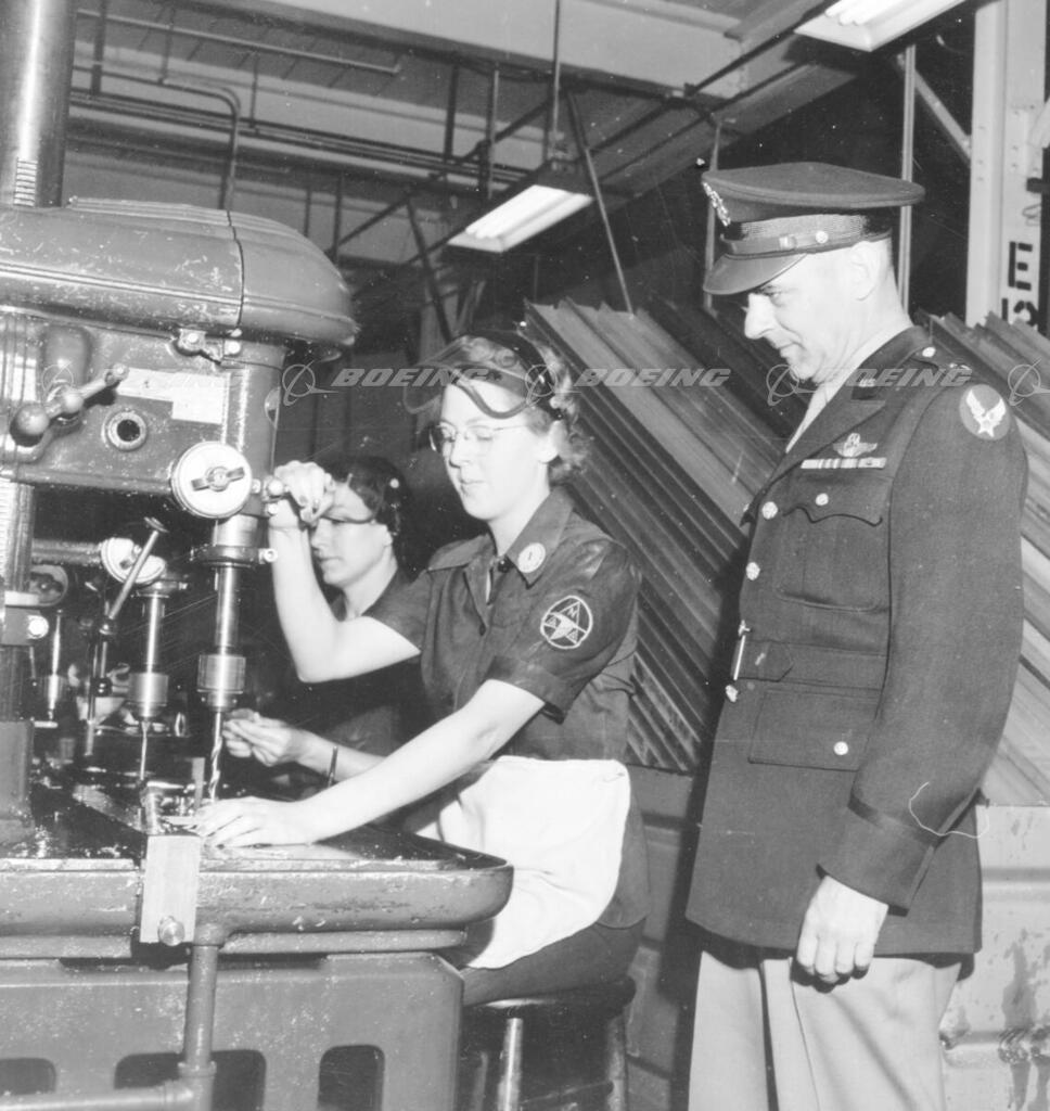 Female Employee Machinist Working on Aircraft for Douglas Aircraft Company
