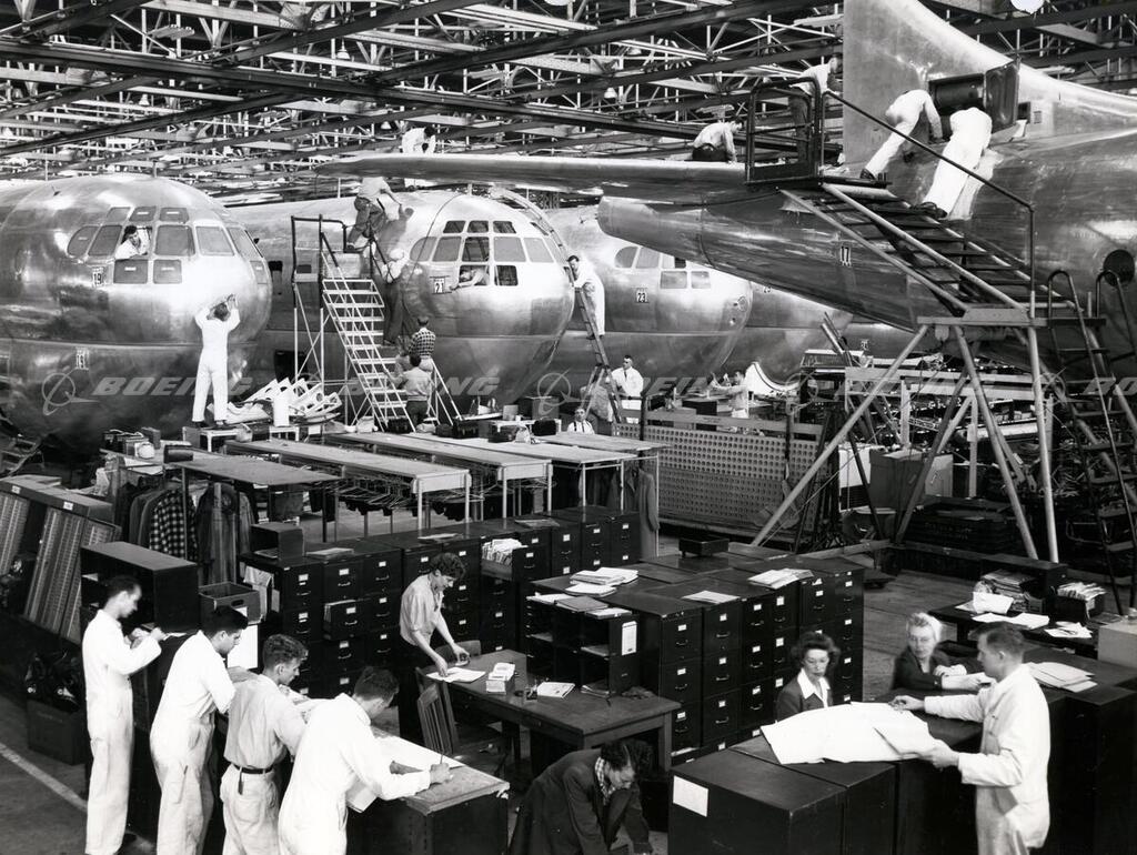 Employees Working Together on a Boeing B-17 Flying Fortress Assembly