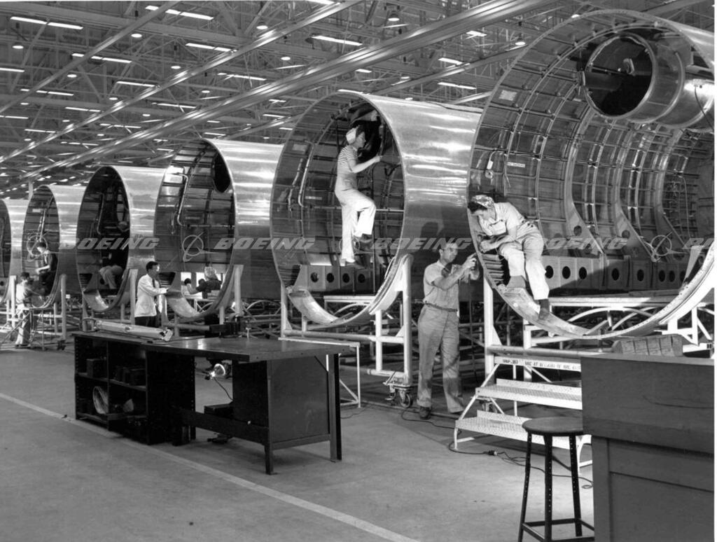 Employees Working Together on a Boeing B-17 Flying Fortress Assembly