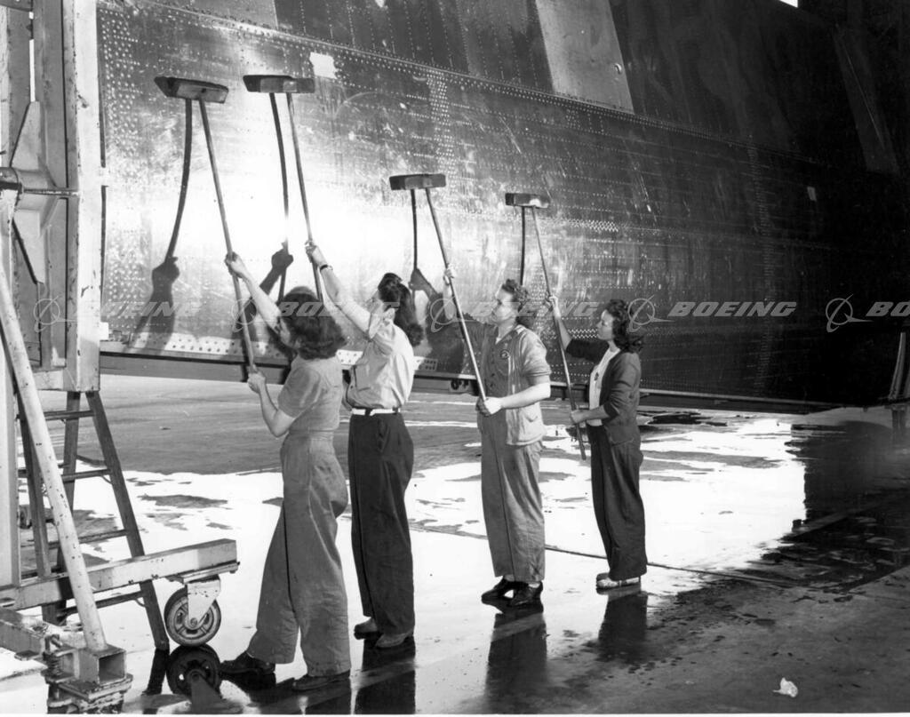 Employees Working Together on a Boeing B-17 Flying Fortress Assembly