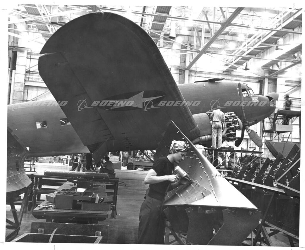 Employees Working Together on a Boeing B-17 Flying Fortress Assembly