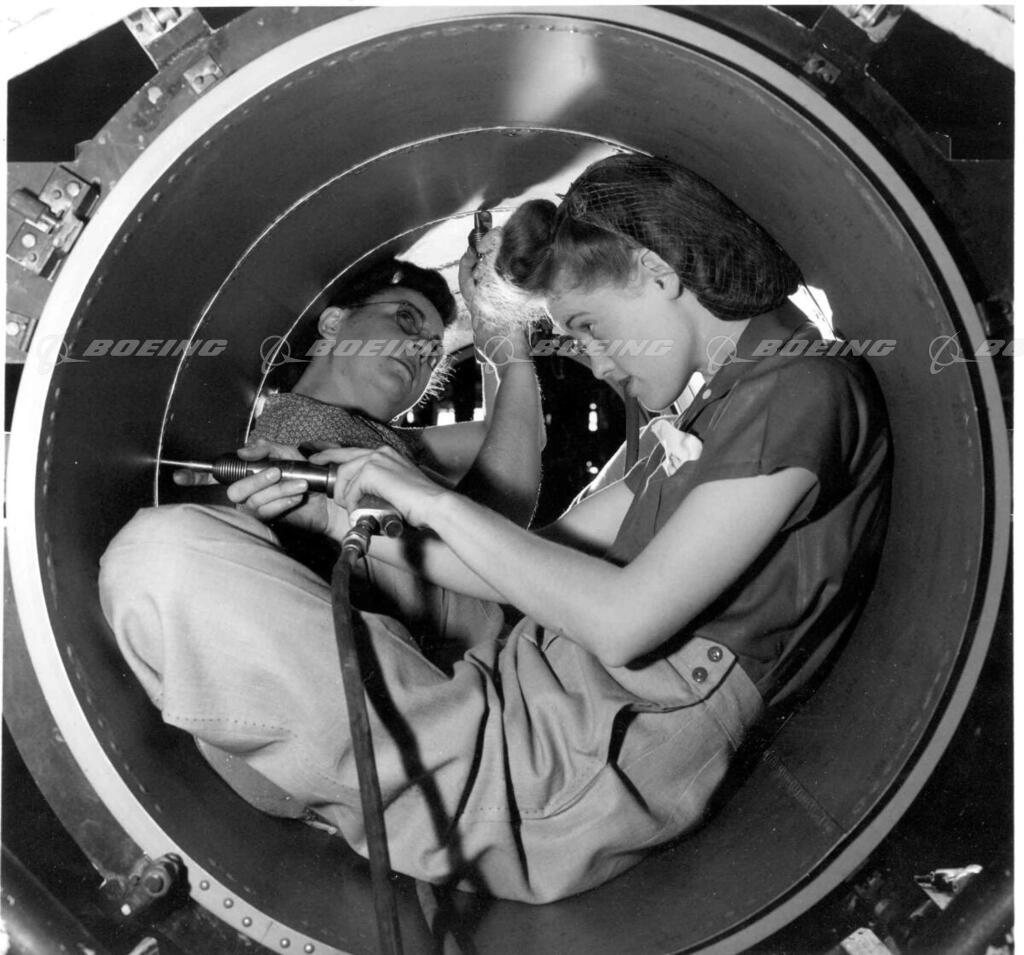Employees Working Together on a Boeing B-17 Flying Fortress Assembly