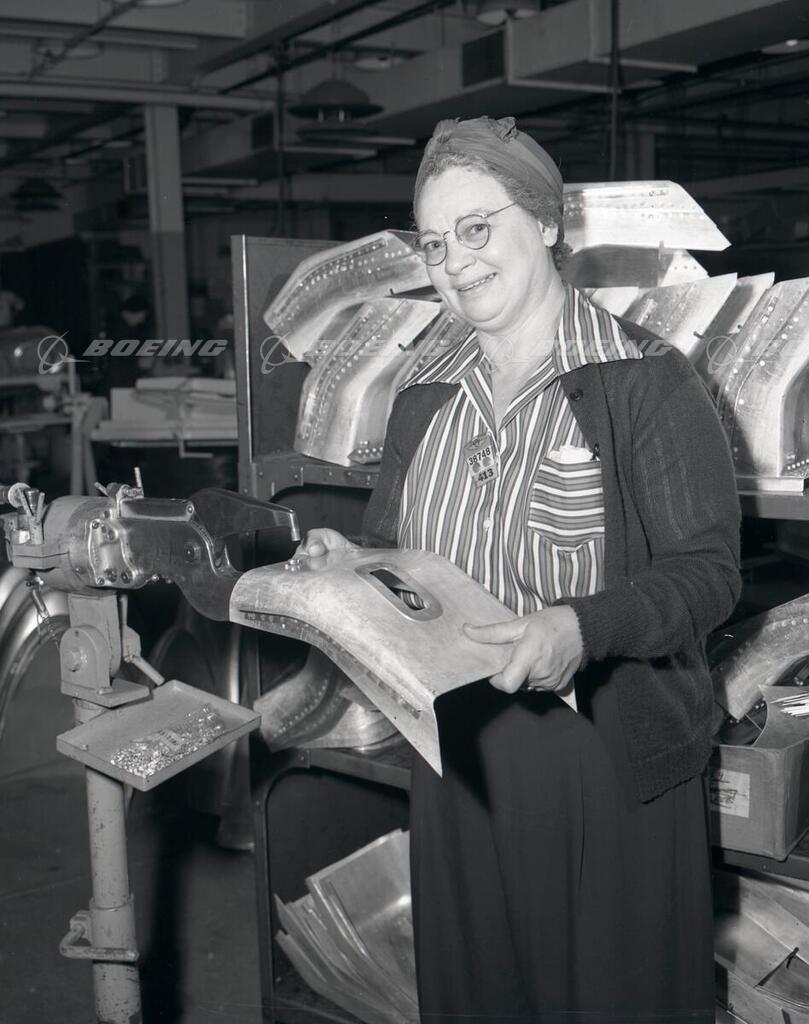 Female Employee Machinist Working on Aircraft for Douglas Aircraft Company