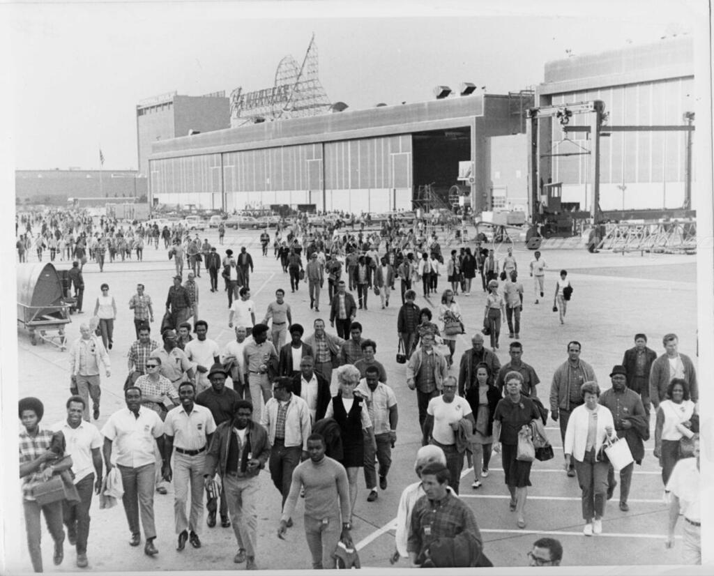 Employess change shifts at Douglas Aircraft Company