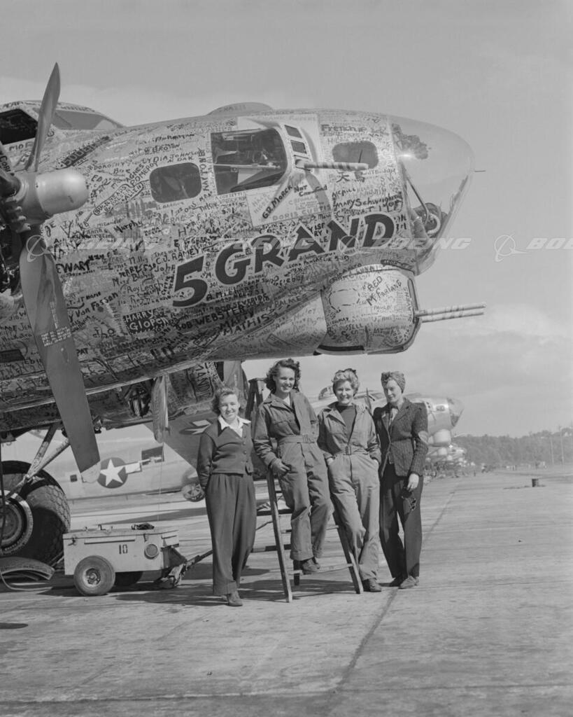 Women Stand in Front of 5 Grand B-17 Flying Fortress