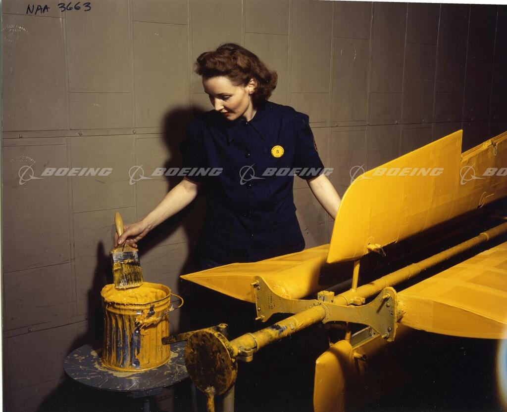 Female Employee Machinist Working on Aircraft for Douglas Aircraft Company