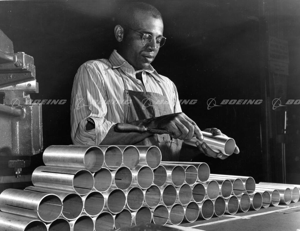 Female Employee Machinist Working on Aircraft for Douglas Aircraft Company