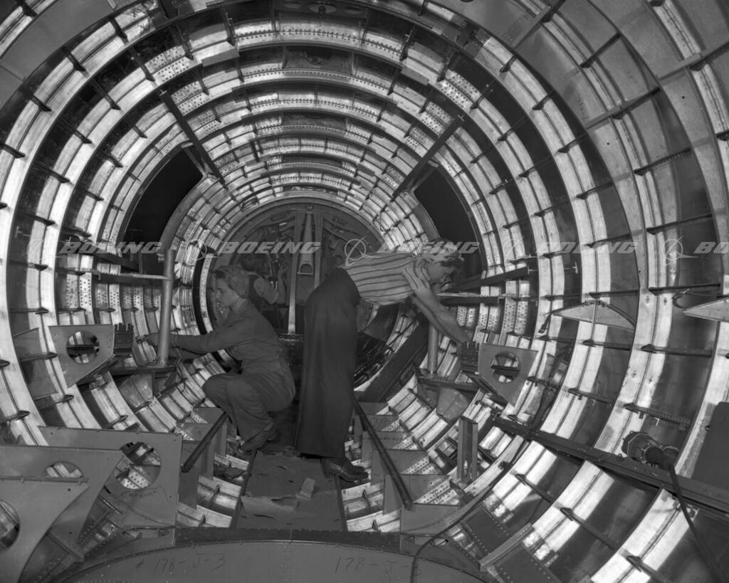 Woman Cleaning B-17 Flying Fortress Tail Section Under Construction