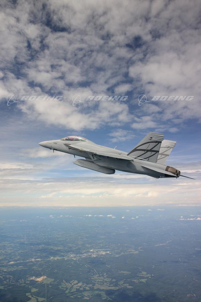 First flight of the F/A-18E/F Advanced Super Hornet with conformal fuel tanks and Enclosed Weapons Pod, August 7, 2013.